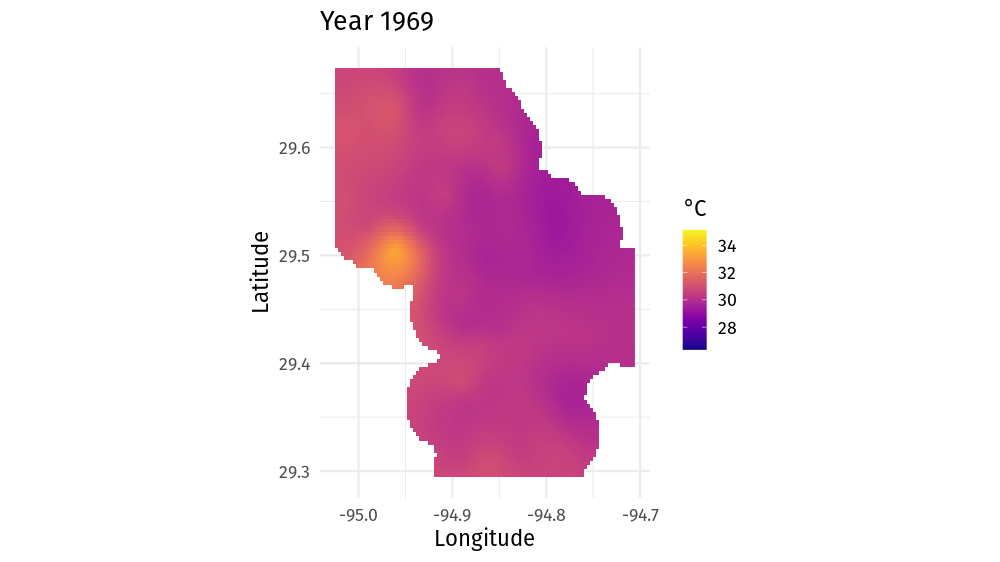 class: inverse, middle, left, my-title-slide, title-slide # Estimating trends in messy time series ## — using generalized additive models ### Gavin Simpson ### Statistics & Biostatistic Seminar Series • University of Waterloo • Department of Statistics & Actuarial Science • March 10, 2022 --- ### Land acknowledgment * This work was done at URegina on Treaty 4 lands ### Funding .row[ .col-6[ .center[] ] .col-6[ .center[] ] ] ### Data * Woolway and colleagues for archiving the lake surface water data * Lake ice data from [Global Lake and River Ice Phenology Database](http://nsidc.org/data/G01377.html) * Lake ice study joint work with Stefano Mezzini <!-- ### Slides * HTML Slide deck [bit.ly/hifmb-talk](http://bit.ly/hifmb-talk) © Simpson (2020) [](http://creativecommons.org/licenses/by/4.0/) --> ??? This research was conducted while I was at the University of Regina, which is situated on the territories of the nay-hi-yuh-wuk (Cree; nêhiyawak), uh-nish-i-naa-payk (Salteaux; Anihšināpēk), Dakota, Lakota, and Nakoda, and the homeland of the Métis/Michif Nation. --- class: inverse background-image: url('./resources/franki-chamaki-z4H9MYmWIMA-unsplash.jpg') background-size: cover # .footnote[ <a style="background-color:black;color:white;text-decoration:none;padding:4px 6px;font-family:-apple-system, BlinkMacSystemFont, "San Francisco", "Helvetica Neue", Helvetica, Ubuntu, Roboto, Noto, "Segoe UI", Arial, sans-serif;font-size:12px;font-weight:bold;line-height:1.2;display:inline-block;border-radius:3px" href="https://unsplash.com/@franki?utm_medium=referral&utm_campaign=photographer-credit&utm_content=creditBadge" target="_blank" rel="noopener noreferrer" title="Download free do whatever you want high-resolution photos from Franki Chamaki"><span style="display:inline-block;padding:2px 3px"><svg xmlns="http://www.w3.org/2000/svg" style="height:12px;width:auto;position:relative;vertical-align:middle;top:-2px;fill:white" viewBox="0 0 32 32"><title>unsplash-logo</title><path d="M10 9V0h12v9H10zm12 5h10v18H0V14h10v9h12v-9z"></path></svg></span><span style="display:inline-block;padding:2px 3px">Franki Chamaki</span></a> ] ??? We learn from data because it can highlight our preconceptions and biases --- # Learning from data <!-- --> ??? Learning from data could be a simple as fitting a linear regression model... --- class: inverse background-image: url('./resources/deep-learning-turned-up-to-11.jpg') background-size: contain # ??? Or as complex as fitting a sophisticated multi-layered neural network trained on huge datasets or corpora --- # Learning involves trade-offs .row[ .col-6[ .center[] ] .col-6[ .center[] ] ] ??? Learning from data involves trade offs We can have models that fit our data well — low bias — but which are highly variable, or We can fit models that have lower variance, but these tend to have higher bias, i.e. fit the data less well A linear regression model is very interpretable but unless the underlying relationship is linear it will have poor fit Deep learning may fit data incredibly well but the model is very difficult to interpret and understand --- # Generalized Additive Models <br />  .references[Source: [GAMs in R by Noam Ross](https://noamross.github.io/gams-in-r-course/)] ??? GAMs are an intermediate-complexity model * can learn from data without needing to be informed by the user * remain interpretable because we can visualize the fitted features --- # HadCRUT4 time series <!-- --> --- # Polynomials <!-- --> --- # How is a GAM different? In LM we model the mean of data as a sum of linear terms: `$$y_i = \beta_0 + \sum_j \color{red}{ \beta_j x_{ji}} + \epsilon_i$$` A GAM is a sum of _smooth functions_ or _smooths_ `$$y_i = \beta_0 + \sum_j \color{red}{s_j(x_{ji})} + \epsilon_i$$` where `\(\epsilon_i \sim N(0, \sigma^2)\)` --- # More generally `$$y_i \sim \mathcal{D}(\mu_i, \phi)$$` `$$g(\mu_i) = \boldsymbol{A}_i\boldsymbol{\gamma} + \sum_j f_j(x_{ji})$$` --- class: inverse middle center subsection # GAMs use splines --- class: inverse background-image: url('resources/wiggly-things.png') background-size: contain ??? --- # Splines formed from basis functions <!-- --> ??? Splines are built up from basis functions Here I'm showing a cubic regression spline basis with 10 knots/functions We weight each basis function to get a spline. Here all the basisi functions have the same weight so they would fit a horizontal line --- # Weight basis functions ⇨ spline .center[] ??? But if we choose different weights we get more wiggly spline Each of the splines I showed you earlier are all generated from the same basis functions but using different weights --- # How do GAMs learn from data? <!-- --> ??? How does this help us learn from data? Here I'm showing a simulated data set, where the data are drawn from the orange functions, with noise. We want to learn the orange function from the data --- # Maximise penalised log-likelihood ⇨ β .center[] ??? Fitting a GAM involves finding the weights for the basis functions that produce a spline that fits the data best, subject to some constraints --- class: inverse middle center subsection # Avoid overfitting our sample --- class: inverse middle center subsection # Use a wiggliness penalty — avoid fitting too wiggly models --- # Wiggliness `$$\int_{\mathbb{R}} [f^{\prime\prime}]^2 dx = \boldsymbol{\beta}^{\mathsf{T}}\mathbf{S}\boldsymbol{\beta} = \large{W}$$` `\(\mathbf{S}\)` is a *penalty* matrix `\(\boldsymbol{\beta}^{\mathsf{T}}\mathbf{S}\boldsymbol{\beta}\)` is a *quadratic* penalty --- # Making wiggliness matter `\(W\)` measures **wiggliness** (log) likelihood measures closeness to the data We use a **smoothing parameter** `\(\lambda\)` to define the trade-off, to find the spline coefficients `\(\boldsymbol{\beta}\)` (and `\(\boldsymbol{\gamma}\)`) that maximize the **penalized** log-likelihood `$$\mathcal{L}_p = \log(\text{Likelihood}) - \lambda W$$` --- # HadCRUT4 time series <!-- --> --- # Picking the right wiggliness